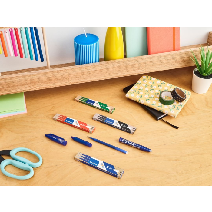 Vyberte si farbu: čiernu, modrú alebo nejakú inú a vymeňte náplň v pere. Alebo sadu zdieľajte s rodinou a priateľmi... Ideálne pre návrat do školy alebo dokonca späť do kancelárie! S týmto doplňovacím balíčkom môžete pokračovať v písaní, kým budú prichádzať nápady...