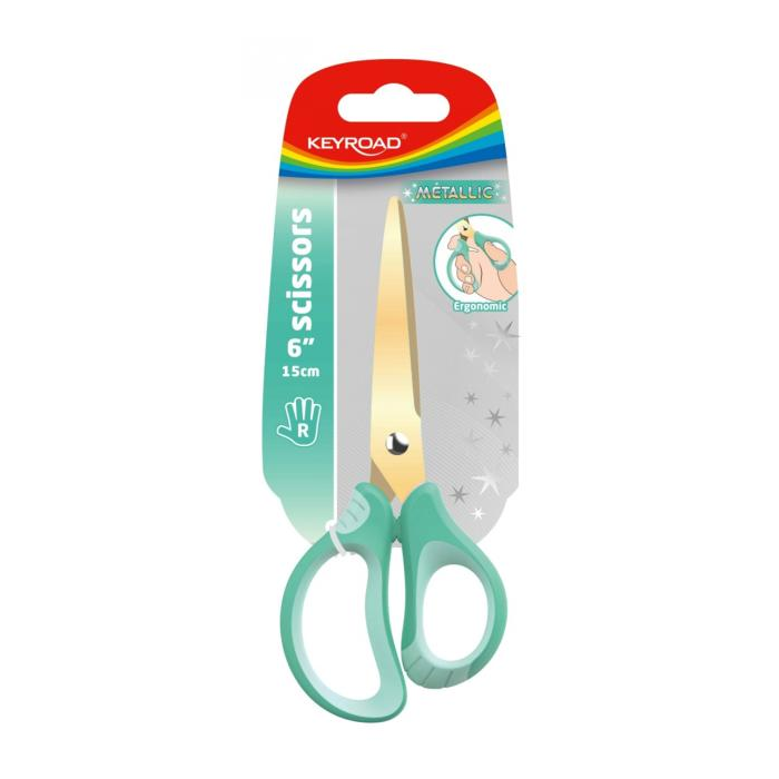 Kovové nožnice KEYROAD s pohodlnou, ergonomickou a mäkkou rukoväťou s titánovým povlakom pre výnimočnú odolnosť voči opotrebovaniu so zaoblenými čepeľami veľkosť: 15,5 cm farba: rôzne farby