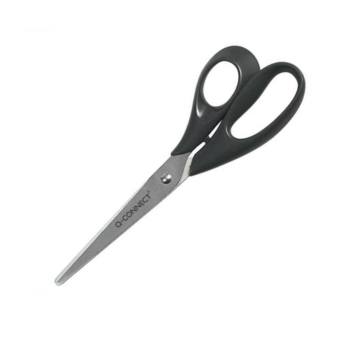 Univerzálne kancelárske nožnice na strihanie papiera, kartónu, lepenky, samolepiacej pásky a pod. so strihacou časťou z nehrdzavejúcej ocele. Farba čierna.