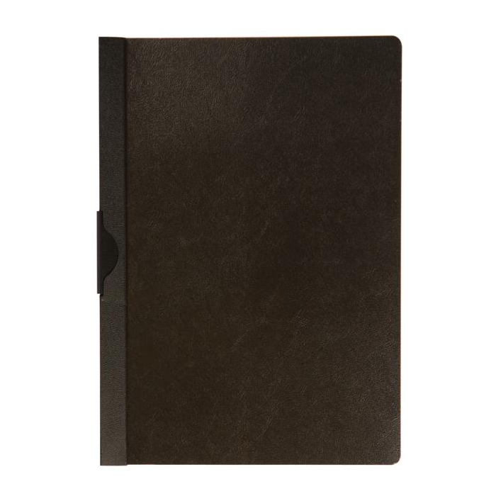 Obal z pevného polypropylénu s priehľadnou prednou stranou a kovovým vyklápacím klipom v čiernej farbe. Formát A4. Kapacita 1 - 30 listov. Väčšie balenie 25 ks. Farba čierna.