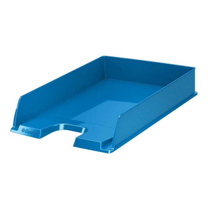 Moderný odkladač na uloženie dokumentov formátu A4 s unikátnym embosovaným povrchom po boku odkladača a v sviežich farbách radu Esselte VIVIDA. Možnosť kolmého alebo predsadeného stohovania, zaoblený výrez pre jednoduchší prístup k dokumentom. Materiál polystyrén. Rozmery 254 × 350 × 61 mm. Farba modrá.