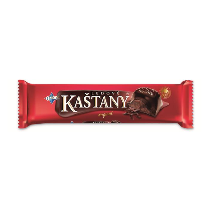 Horká čokoláda s kakaovoorieškovou náplňou 53 %. Horká čokoláda Orion (36 % kakaovej sušiny) s lahodnou kakaovoorieškovou náplňou v obľúbenej tyčinke, ktorá je už s nami viac ako 50 rokov. Tradičná receptúra, originál od roku 1966 a najobľúbenejšia verzia z radu Ledových Kaštanov. Ledové Kaštany v sebe spájajú lahodnú horkú čokoládu a bohatú kakaovoorieškovú náplň, vďaka ktorej si môžeme dopriať dlhotrvajúci chuťový zážitok. Sú určené pre skutočných milovníkov poctivej čokolády.