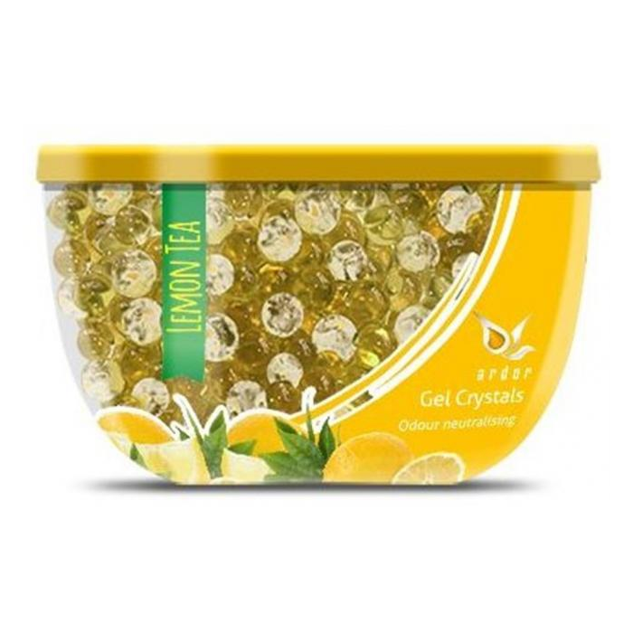 Gélové guličky Ardor Lemon tea postupne uvoľňujú sviežu vôňu a neutralizujú zápach. Ak chcete, aby vôňa bola intenzívnejšia, tak náplňou zatraste. Otvorte plastový kryt, odstráňte plastovú fóliu a nasaďte kryt naspäť. Umiestnite dózu na chránený povrch. Zabráňte kontaktu s očami. V prípade ich zasiahnutia, oči vypláchnite veľkým množstvom vody. Ak podráždenie oči pretrváva, vyhľadajte lekársku pomoc. Uchovávajte mimo dosahu detí. Obsah balenia 150g.