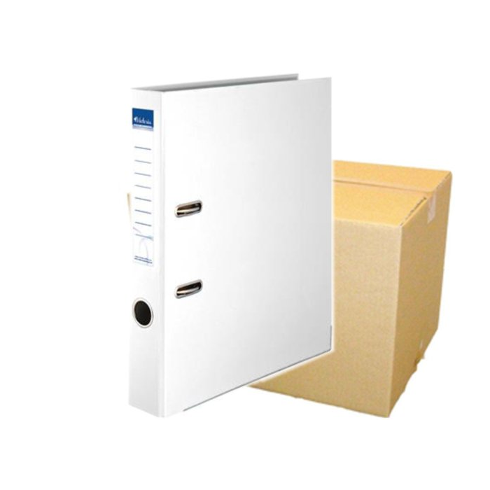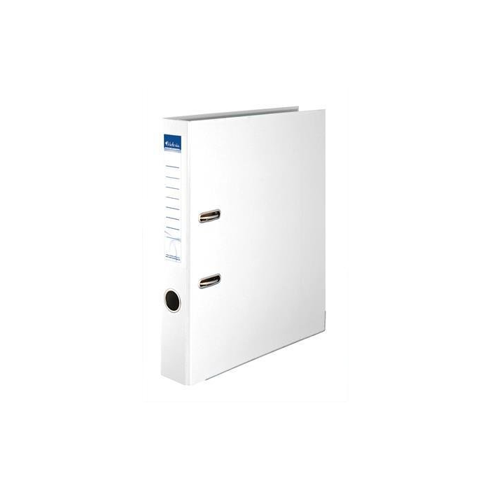 Predajné len kartónové balenie = 25 ks, materiál kartón potiahnutý PP fóliou, umývateľný povrch, s ochrannou spodnou lištou, pákový mechanizmus, RADO zámok, nalepený chrbtový štítok, biela farba, rozmery 50 × 318 mm (Š×H)