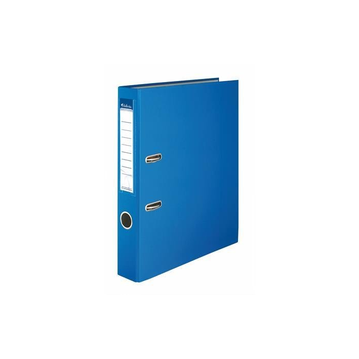 Zakladač/Šanón – A4, materiál kartón potiahnutý PP fóliou, umývateľný, bez ochrannej spodnej lišty pre ochranu nábytku, pákový mechanizmus, RADO zámok, nalepený chrbtový štítok, modrá farba, rozmery 50 × 318 mm (Š×H)
