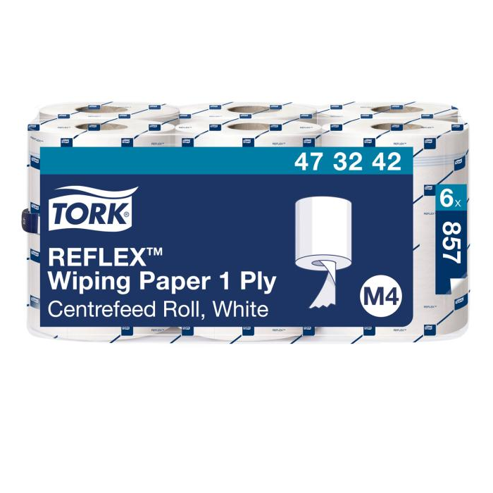 Jednovrstvová viacúčelová papierová utierka Tork Reflex™ je ideálna na stieranie a ručné utieranie vďaka svojej sile a vysokej absorpcii. Túto papierovú utierku možno použiť v Tork Reflex™ zásobníku M4 so stredovým odvíjaním na dávkovanie po jednom útržku, ktorý znižuje spotrebu a minimalizuje riziko krížovej kontaminácie. V predaji po balení (6 roliek).