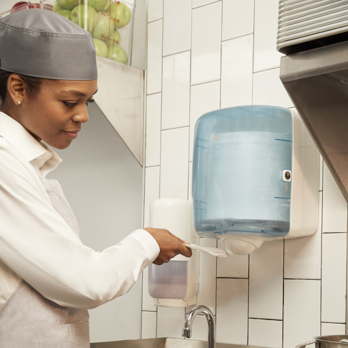 Jednovrstvová viacúčelová papierová utierka Tork Reflex™ je ideálna na stieranie a ručné utieranie vďaka svojej sile a vysokej absorpcii. Túto papierovú utierku možno použiť v Tork Reflex™ zásobníku so stredovým odvíjaním na dávkovanie po jednom útržku, ktorý vyhovuje vašej tímovej práci, znižuje spotrebu a minimalizuje riziko krížovej kontaminácie.