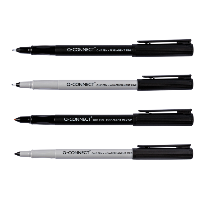 Permanentný popisovač Q-Connect OHP, rýchloschnúci. Jemný plastový hrot s 0,5 mm šírkou písma permanentným atramentom.