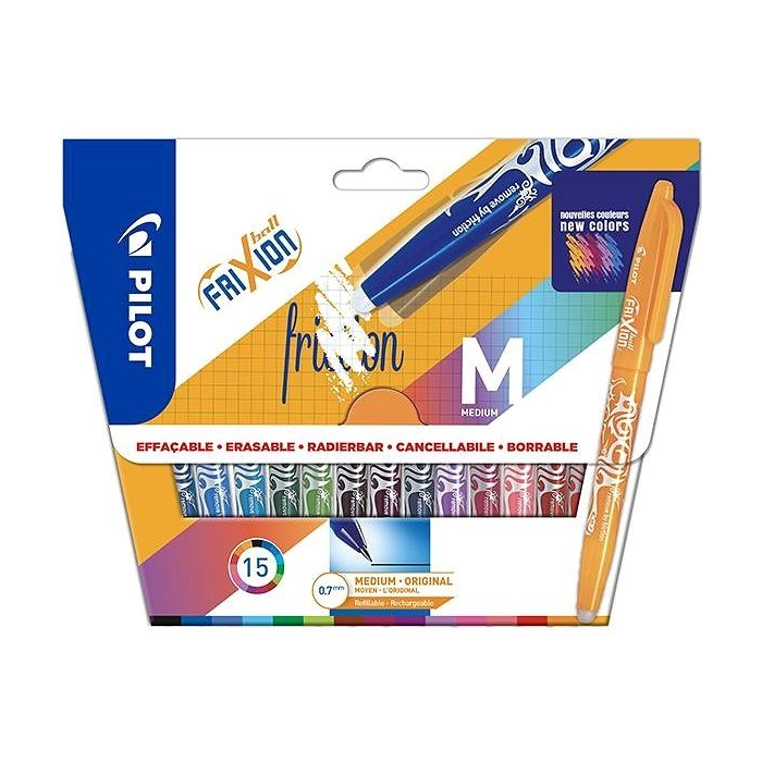 FriXion Ball - Set2Go s 15 kusmi - čierna, modrá, nebeská modrá, svetlo modrá, zelená, svetlo zelená, hnedá, vínová, fialová, lila, ružová, korálová ružová, červená, oranžová, marhuľová - Stredný Hrot (M)