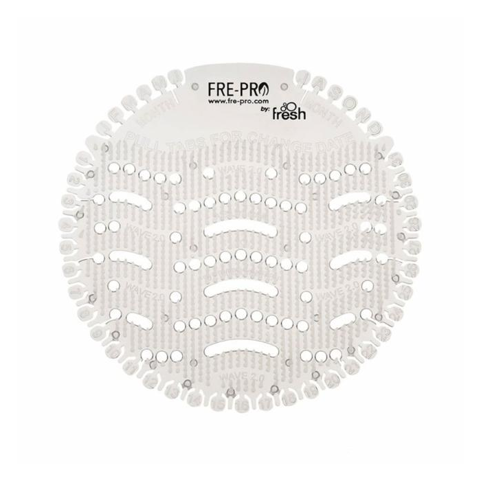 Vonné gélové sitko do pisoára Wave 2 je súčasťou radu originálnych produktov FRE-PRO. Revolučný transparentný a flexibilný dizajn, umožňujúci náhľad do odpadových ciest, redukuje rozstrekovanie moču, udržuje pisoár v čistote a redukuje čas potrebný na očistu až o polovicu.