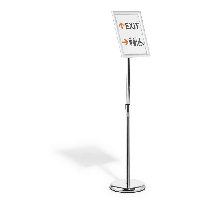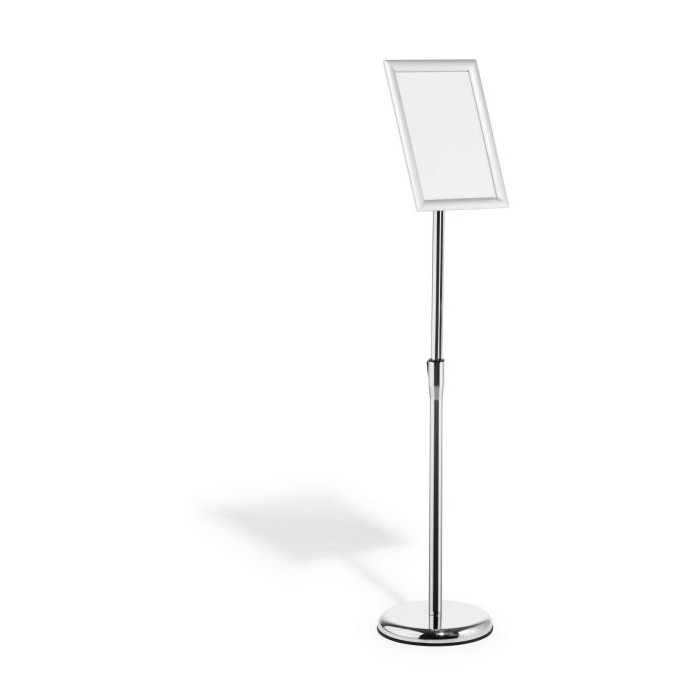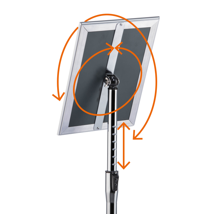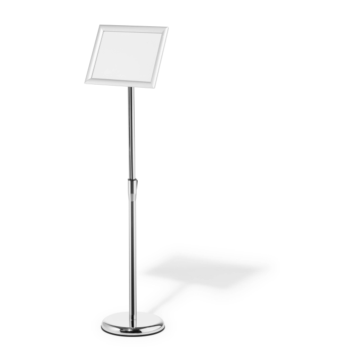 Rýchlo zostaviteľný informačný stojan s robustným hliníkovým skladacím rámom DIN A4, strieborne eloxovaný