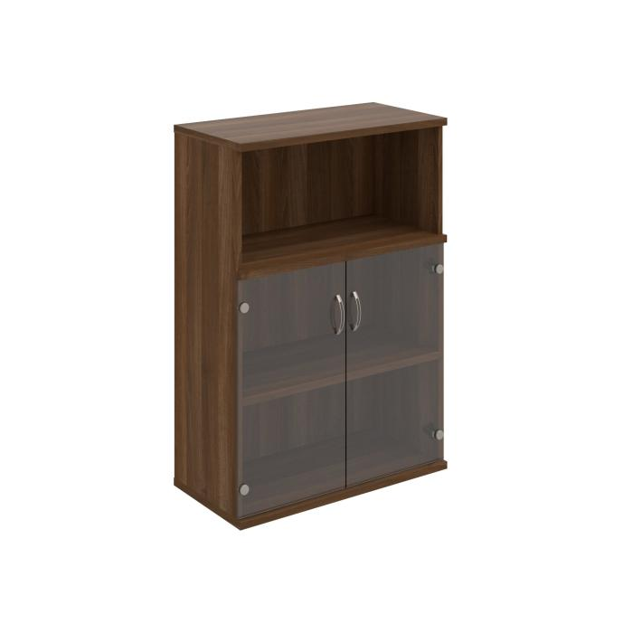 Kombinovaná skriňa - dvere/nika. Kancelárske skrine STRONG majú robustnú konštrukciu a vyššiu nosnosť políc ako bežné kancelárske skrine.V ponuke sú skriňové moduly s výškou 185 cm, 111 cm alebo 74 cm a šírky 80 cm alebo 40 cm. Hĺbka všetkých modelov skriňového radu STRONG je 40 cm.Chrbát, vyrobený z 8 mm hrubých dosák, je obojstranne pohľadový, takže skrine môžete použiť ako priestorový deliaci prvok. Hrúbka samotných políc je 25 mm, čo znamená nosnosť 80 kg na 1 policu.Korpusy, dvierka a police skríň sú olepené odolnou 2mm ABS hranou, ktorá garantuje dostatočnú ochranu proti poškodeniu.