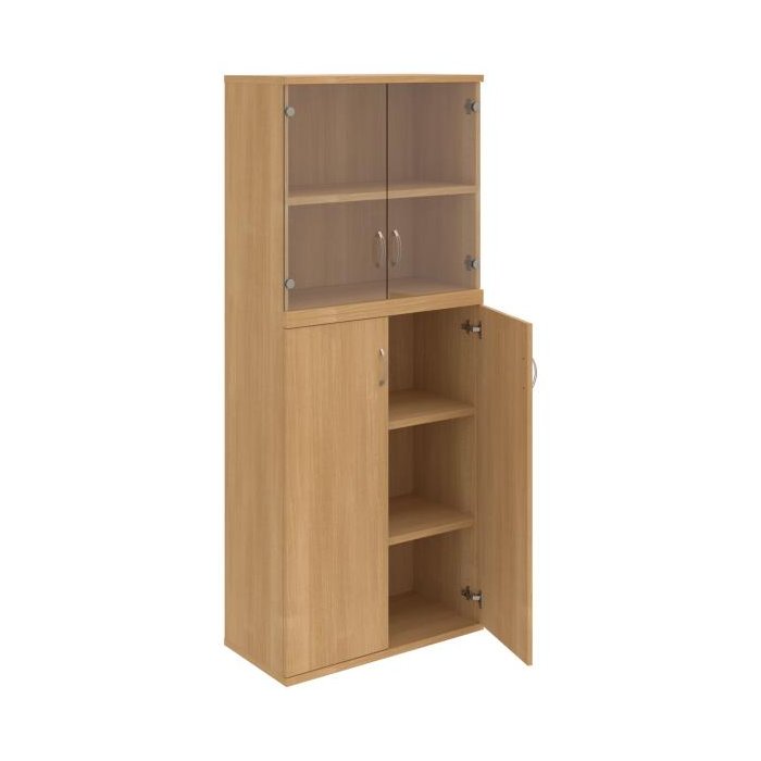 Kombinovaná skriňa - dvere/nika. Kancelárske skrine STRONG majú robustnú konštrukciu a vyššiu nosnosť políc ako bežné kancelárske skrine.V ponuke sú skriňové moduly s výškou 185 cm, 111 cm alebo 74 cm a šírky 80 cm alebo 40 cm. Hĺbka všetkých modelov skriňového radu STRONG je 40 cm.Chrbát, vyrobený z 8 mm hrubých dosák, je obojstranne pohľadový, takže skrine môžete použiť ako priestorový deliaci prvok. Hrúbka samotných políc je 25 mm, čo znamená nosnosť 80 kg na 1 policu.Korpusy, dvierka a police skríň sú olepené odolnou 2mm ABS hranou, ktorá garantuje dostatočnú ochranu proti poškodeniu.