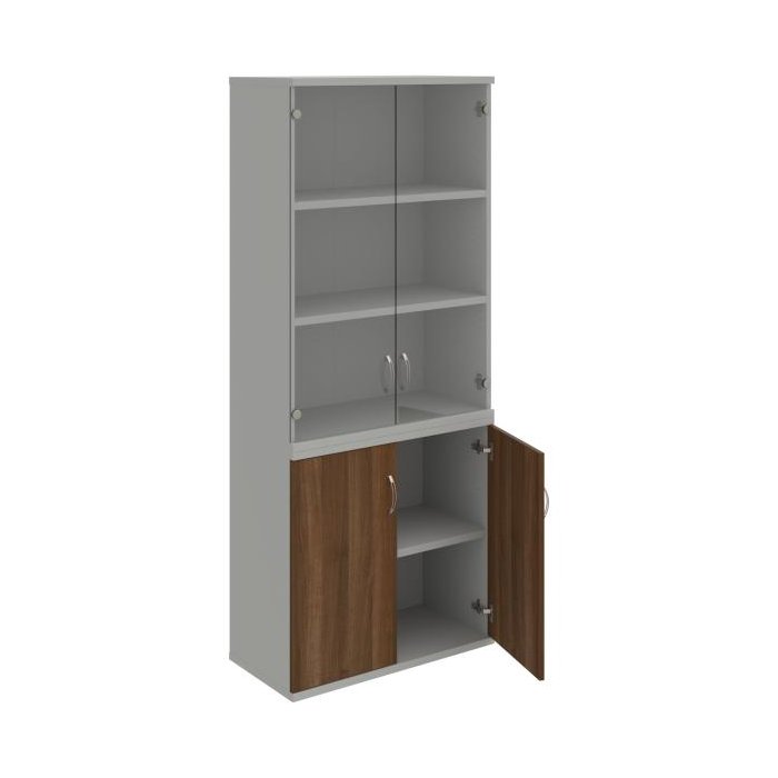 Kombinovaná skriňa - dvere/nika. Kancelárske skrine STRONG majú robustnú konštrukciu a vyššiu nosnosť políc ako bežné kancelárske skrine.V ponuke sú skriňové moduly s výškou 185 cm, 111 cm alebo 74 cm a šírky 80 cm alebo 40 cm. Hĺbka všetkých modelov skriňového radu STRONG je 40 cm.Chrbát, vyrobený z 8 mm hrubých dosák, je obojstranne pohľadový, takže skrine môžete použiť ako priestorový deliaci prvok. Hrúbka samotných políc je 25 mm, čo znamená nosnosť 80 kg na 1 policu.Korpusy, dvierka a police skríň sú olepené odolnou 2mm ABS hranou, ktorá garantuje dostatočnú ochranu proti poškodeniu.