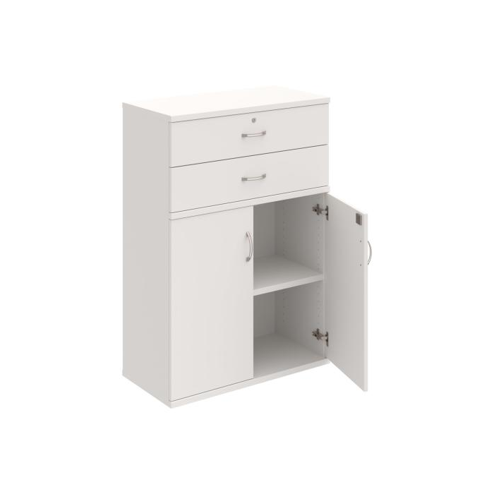 Kancelárske skrine STRONG majú robustnú konštrukciu a vyššiu nosnosť políc ako bežné kancelárske skrine.V ponuke sú skriňové moduly s výškou 185 cm, 111 cm alebo 74 cm a šírky 80 cm alebo 40 cm. Hĺbka všetkých modelov skriňového radu STRONG je 40 cm.Chrbát, vyrobený z 8 mm hrubých dosák, je obojstranne pohľadový, takže skrine môžete použiť ako priestorový deliaci prvok. Hrúbka samotných políc je 25 mm, čo znamená nosnosť 80 kg na 1 policu.Korpusy, dvierka a police skríň sú olepené odolnou 2mm ABS hranou, ktorá garantuje dostatočnú ochranu proti poškodeniu.