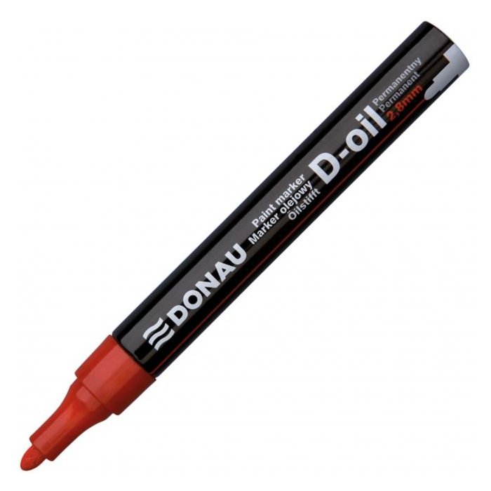 Rýchloschnúci permanentný vodeodolný popisovač s kovovým telom. Okrúhly hrot priemeru 2,8 mm.