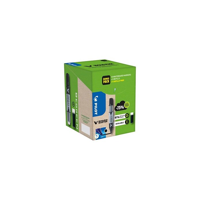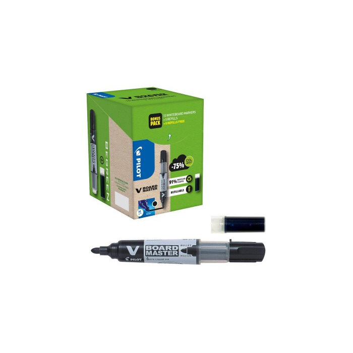Popisovač na tabule, 2,3 mm, kužeľový hrot, PILOT "V-Board Master, Bonus Pack", čierna + náplň
