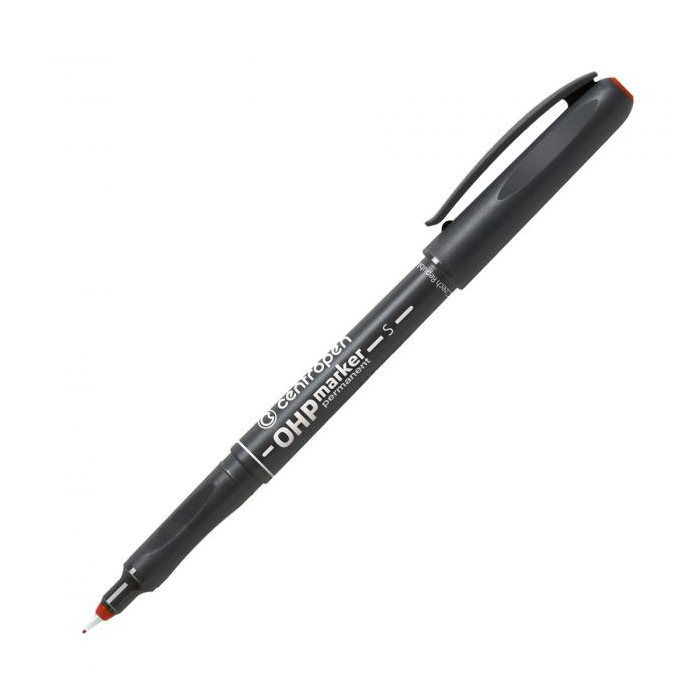 Permanentné popisovače na alkoholovej báze s ergo držaním na popisovanie transparentných fólií do spätných projektorov, ale tiež na plastické hmoty, sklo a pod. Väčšie balenie 10 ks v jednej farbe. Hrot okrúhly, šírka stopy 0,3 - 0,4 mm. Farba červená.