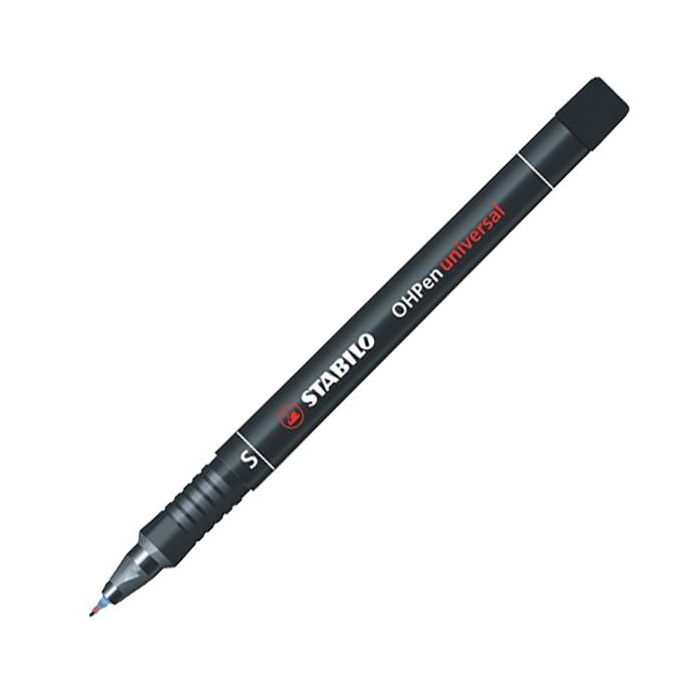Permanentné popisovače na popisovanie takmer všetkých hladkých povrchov. Nekĺzavá úchytová zóna, praktický klip, bez vrchnáka vydrží až 3 dni. Väčšie balenie 10 ks v jednej farbe. STABILO® OHPen universal Superfine (S) Hrot okrúhly, šírka stopy 0,4 mm. Farba čierna.