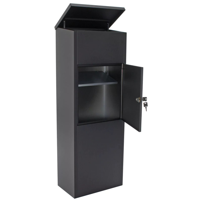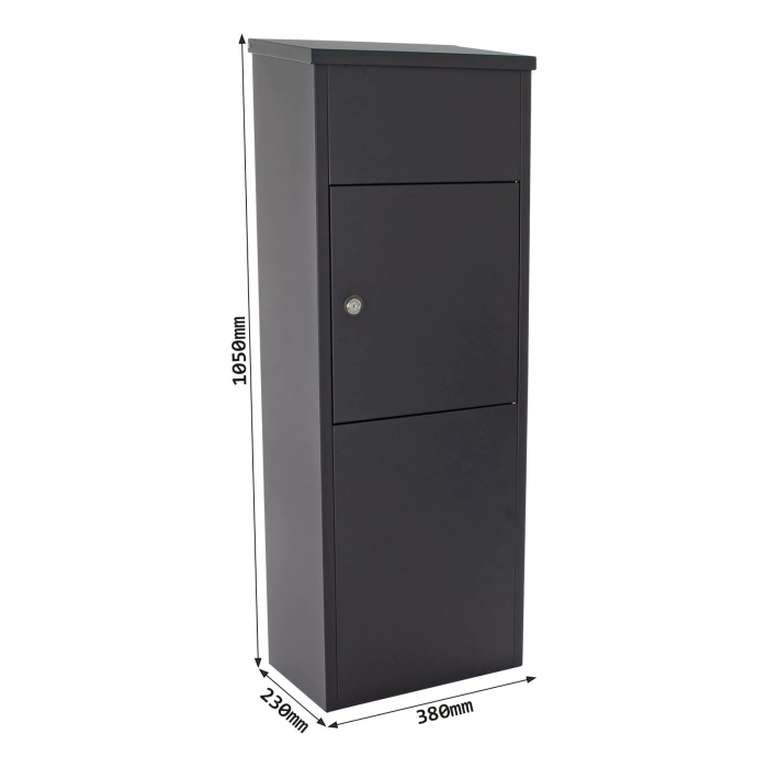 Objavte všetky výhody stojanovej poštovej schránky pre balíky ale aj klasickú poštu. Veľký horný vhod pre balíky a poštu. Po tom, ako vám váš poštár doručí balík, stačí iba otvoriť veľké dvierka na bočnej strane schránky a balík je váš. Doručená pošta a balíky sú bezpečne uzamknuté za klasickým cylindrickým zámkom. Stojanovú poštovú schránku môžete voľne položiť na požadované miesto alebo ju pre každý prípad ukotviť. Kotviaci materiál je súčasťou dodávky.