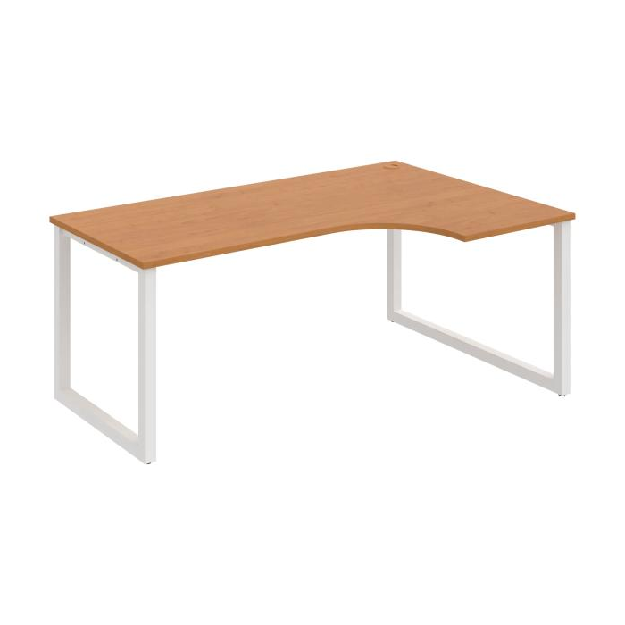 Pracovný stôl tvarovaný. Doska stola z kvalitného lamina. Pevná kovová konštrukcia podnožia zo štvorcových profilov 50 x 50 mm je tvorená kompaktnými pármi nôh, ktoré sú spojené priečnikmi. Výškovo nastaviteľná rektifikácia zaisťuje možnosť dorovnania prípadnej nerovnosti podlahy až o 1,5 cm. Stolová pracovná doska z LTD má hrúbku 25 mm a je zakončená 2mm hranou ABS, ktorá ju chráni pred poškodením. Samozrejmosťou sú káblové priechodky a systém pre zavesenie káblov pod stolovou doskou. Možnosť objednania bieleho či sivého prevedenia podnožia. Stolové doplnky, kontajnery a skrine vyberajte z ponuky kancelárskeho nábytku Hobis. Aby sa zásielka dostala v poriadku až do Vašej kancelárie, dodávame stoly demontované v niekoľkých samostatných a bezpečne zabalených škatuliach. Súčasťou každého balenia je tiež prehľadný návod. Na stoly UNI sa vzťahuje záruka 5 rokov. Farebnosť je ilustratívna.