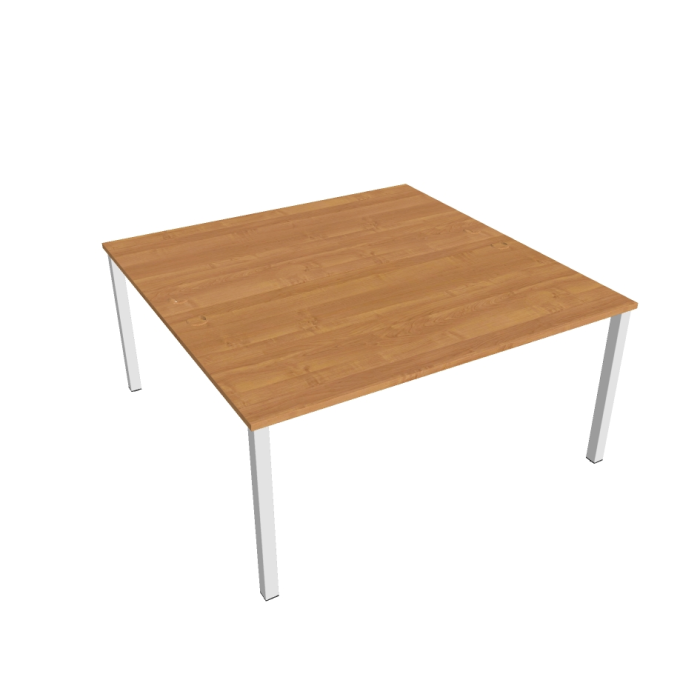Zdvojený pracovný stôl rovný. Doska stola z kvalitného lamina. Pevná kovová konštrukcia podnožia zo štvorcových profilov 50 x 50 mm je tvorená kompaktnými pármi nôh, ktoré sú spojené priečnikmi. Výškovo nastaviteľná rektifikácia zaisťuje možnosť dorovnania prípadnej nerovnosti podlahy až o 1,5 cm. Stolová pracovná doska z LTD má hrúbku 25 mm a je zakončená 2mm hranou ABS, ktorá ju chráni pred poškodením. Samozrejmosťou sú káblové priechodky a systém pre zavesenie káblov pod stolovou doskou. Možnosť objednania bieleho či sivého prevedenia podnožia. Stolové doplnky, kontajnery a skrine vyberajte z ponuky kancelárskeho nábytku Hobis. Aby sa zásielka dostala v poriadku až do Vašej kancelárie, dodávame stoly demontované v niekoľkých samostatných a bezpečne zabalených škatuliach. Súčasťou každého balenia je tiež prehľadný návod. Na stoly UNI sa vzťahuje záruka 5 rokov. Farebnosť je ilustratívna.