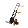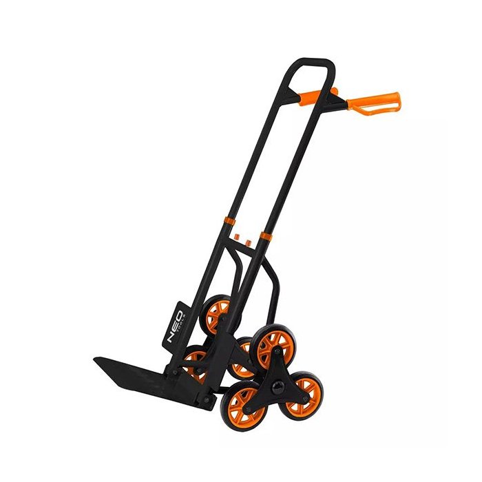 Skladací schodiskový vozík NEO (ref. č. 84-402) s rozmermi základne 310 x 290 mm je šesťkolesový vozík, ktorý možno použiť na prepravu predmetov po rovných plochách s nosnosťou do 150 kg a po schodoch s nosnosťou do 120 kg. Trojité kolesá budú dobre fungovať na rôznych povrchoch. Plastom potiahnuté rukoväte s ochranou prstov zaisťujú pevné uchopenie a uľahčujú manévrovanie s kočíkom. Kovový kryt chráni kolesá a zlepšuje stabilitu prepravovaného nákladu. Prispôsobenie potrebám užívateľa pomocou teleskopickej rukoväte nastaviteľnej do 2 výšok. . V zloženom stave zaberá vozík málo miesta – ľahko sa skladuje.