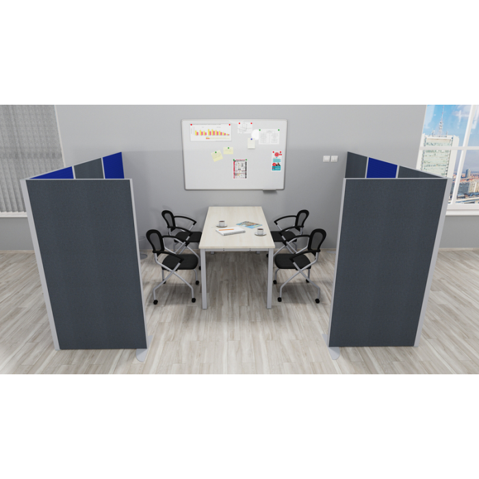 Priečkové akustické paravány. Paravány sú samostatne stojace čalúnené akustické deliace priečky. Oproti stolovým paravánom nie sú umiestnením viazané na stoly a sú koncipované ako nezávislé, voľne stojace dielce. Ich vnútorné dĺžky sú nastavené na rozmery 60, 80, 100 a 120 cm. Nie sú to náhodné miery, dajú sa z nich v prípade potreby poskladať dĺžky pracovných stolov Hobis (80, 120, 140, 160 a 180 cm). Rovnako ako stolové paravány môžeme vďaka spojovacím stĺpikom paravány medzi sebou napojovať priebežne, do tvaru T, L alebo X. Pre spojenie paravánov do zostavy je aj tu použitý bajonetový spoj. Priečkové paravány ponúkame v dvoch výškach. Výška 118 cm umožňuje napojenie na stolové paravány v rovnakej výškovej línii. Výška 156,5 cm zvyšuje akustickú účinnosť znižovania hluku. Cena montáže je 15% z cenníkovej ceny výrobku. Požiadavku na montáž uveďte prosím do poznámky k objednávke. Objednávka tohto produktu je záväzná a produkt nie je možné vrátiť.