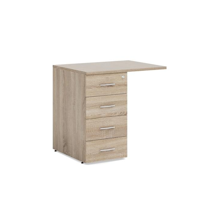 • Prístavné kontajnery sa vyrábajú v rovnakom dizajne a výške ako pracovné stoly a umožňujú tak zväčšenie pracovnej plochy stola. Stoja na rektifikačných nožičkách umožňujúcich vyrovnanie nerovnosti podlahy