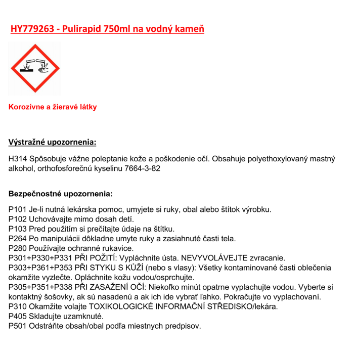 5 - 15 % neionogénne tenzidy, kyselina fosforečná maximálne 24,5 %. Biodegradabilita 90 %.