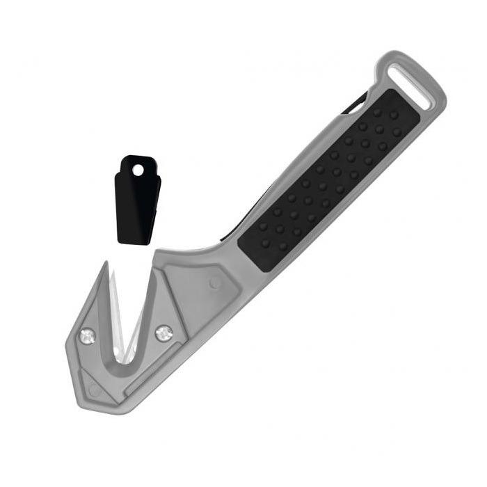 Bezpečnostný rezač na plastovú fóliu, plastové a lepiace pásky. Telo z plastu s mäkkou gumenou zónou. Farba sivá/ čierna. Záruka 5 rokov.