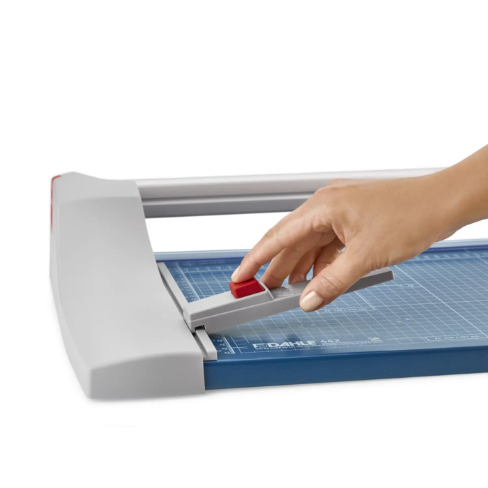 Profesionálna rezačka s kovovou základňou a presným rezom na grafické účely (filmy, fólie, papier). Kvalita na dosiahnutie najvyššej presnosti - automatický prítlak pohybom rezacej hlavy, nastaviteľný zadný doraz s použitím na oba boky, množstvo zakreslených orientačných DIN formátov. Kruhový nôž umiestnený v plastovom ochrannom kryte sa automaticky brúsi pri rezaní o protinôž (oba nože z tvrdenej ocele