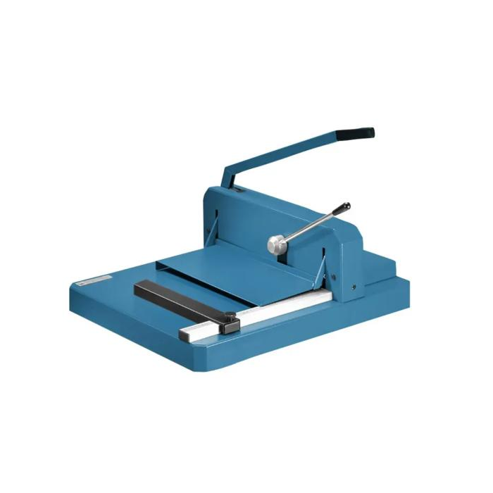 Silná veľkokapacitná rezačka veľkej presnosti, rýchlosti a praktickej funkčnosti, vybavená vysokým stupňom bezpečnosti. Brúsený vrchný a spodný nôž z kvalitnej nožiarskej ocele Solingen, kovový bezpečnostný ochranný kryt, zverák papiera, bočný a zadný doraz. Minimálny rez 35 mm. Mierka v cm/inch a DIN formátoch. Voliteľné príslušenstvo stojan.