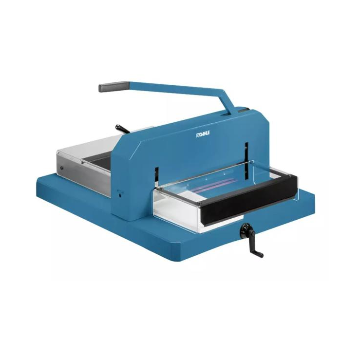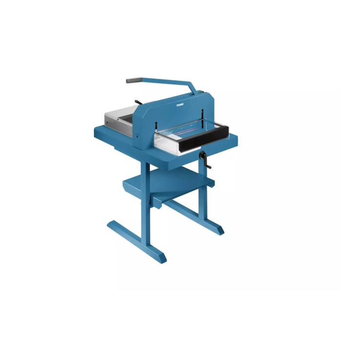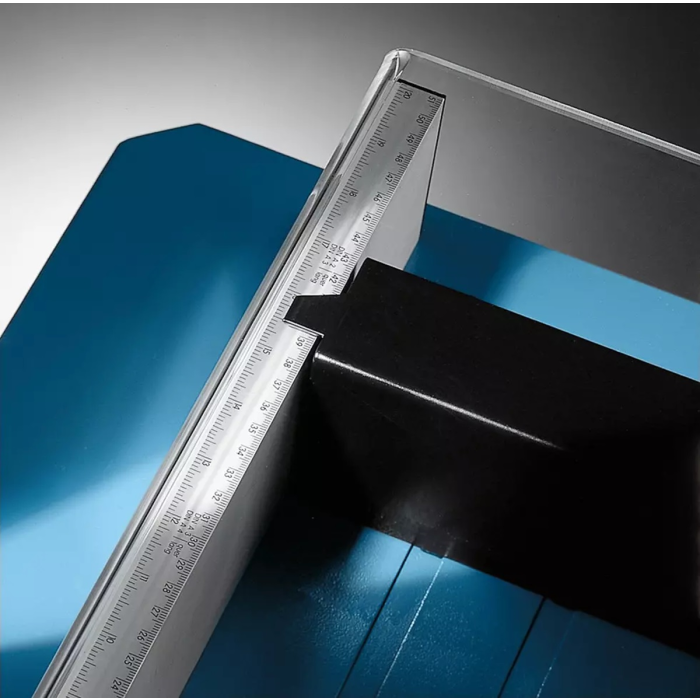 Silná veľkokapacitná rezačka veľkej presnosti, rýchlosti a praktickej funkčnosti, vybavená vysokým stupňom bezpečnosti. Brúsený vrchný a spodný nôž z kvalitnej nožiarskej ocele Solingen, priehľadný bezpečnostný ochranný kryt, zverák papiera, bočný a zadný doraz, ovládaný kľukou. Minimálny rez 40 mm. Mierka v cm/inch a DIN formátoch. Voliteľné príslušenstvo stojan.