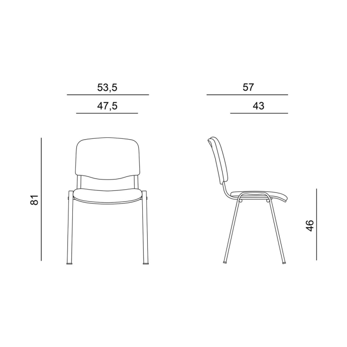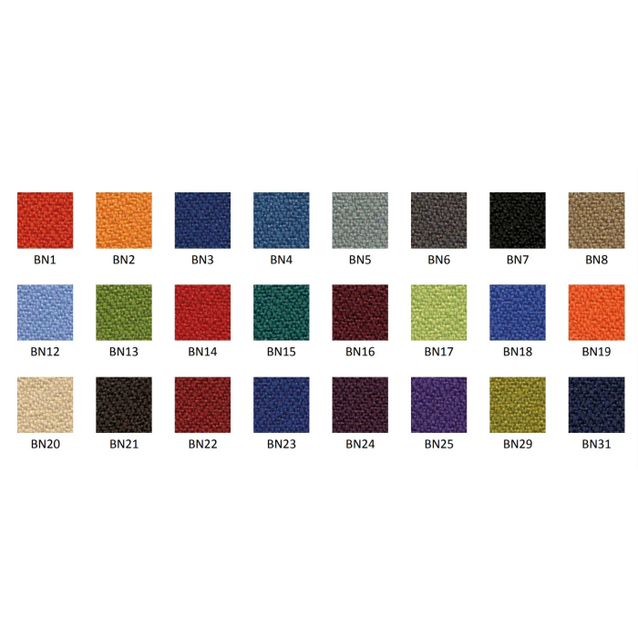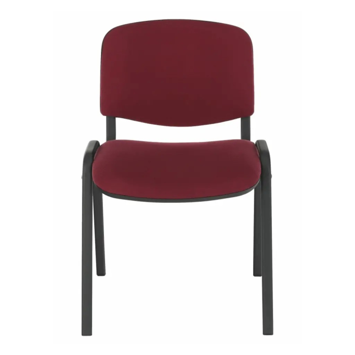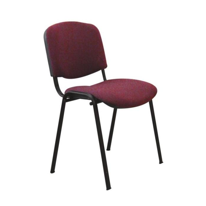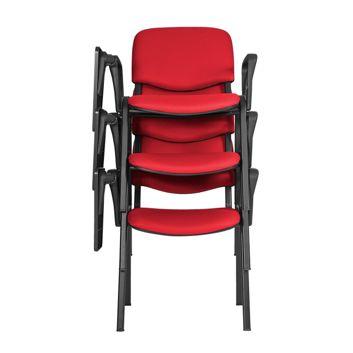 Stohovateľná konferenčná stolička s látkovým poťahom, sedadlo so spodním plastovým krytom.