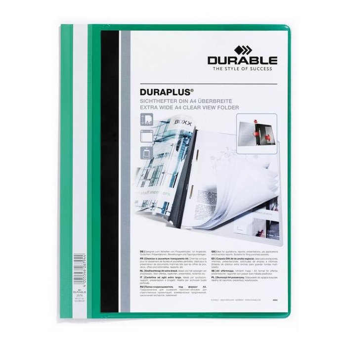 Rýchloviazač DURABLE Duraplus zelený Priehľadný zakladač