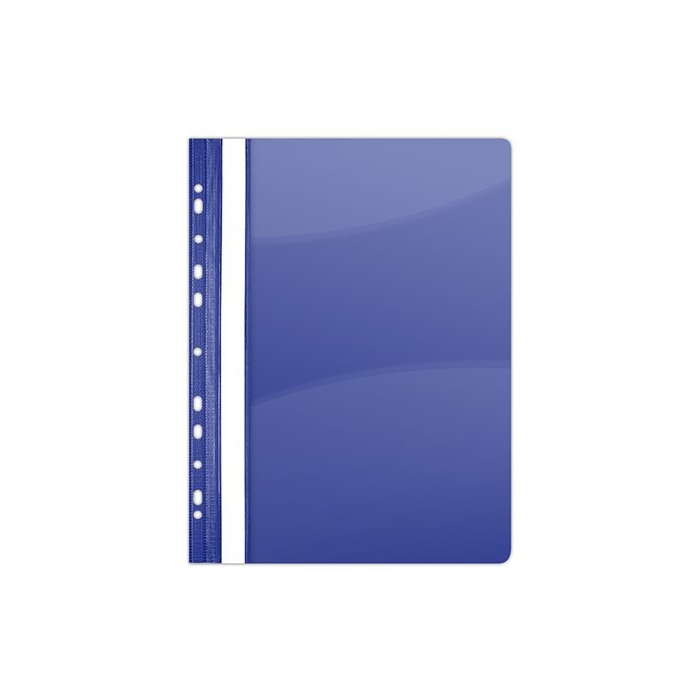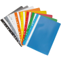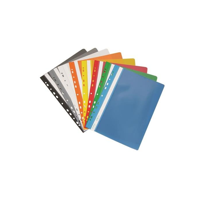 Rýchloviazač do formátu A4, kapacita až 200 listov, celoplastový s europerforáciou, rôznofarebný, popisovateľný bočný pásik, priehľadná predná strana v balení po 10 kusoch