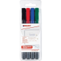 Popisovač na biele tabule za sucha stierateľné s plastovým telom a vymeniteľným hrotom. Dopĺňateľný atramentom edding BTK 25 alebo BT 30. Plastové telo, vymeniteľný hrot. Hrot okrúhly, šírka stopy 1 mm. Sada 4 ks v mixe farieb.
