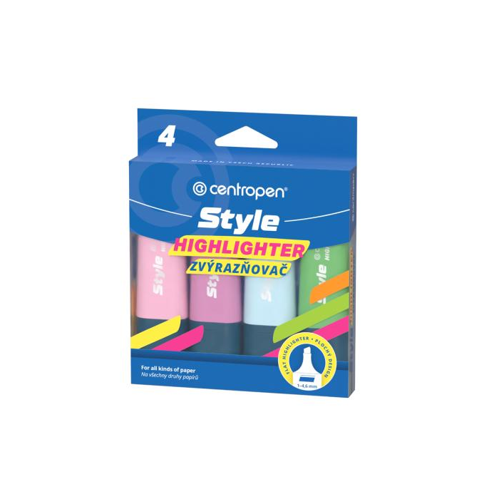 Zvýrazňovač v modernom dizajne pre hladké a pohodlné zvýraznenie textu s klinovým hrotom so šírkou stopy 1 - 4,6 mm. Plnený fl uorescenčným atramentom, vhodným na všetky druhy papierov.