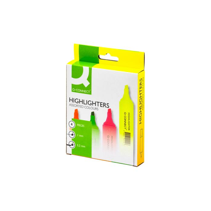 Univerzálny zvýrazňovač neónových farieb s klipom. Hrot zrezaný, šírka stopy 2 - 5 mm. Dodávaný v sade 4 farieb.