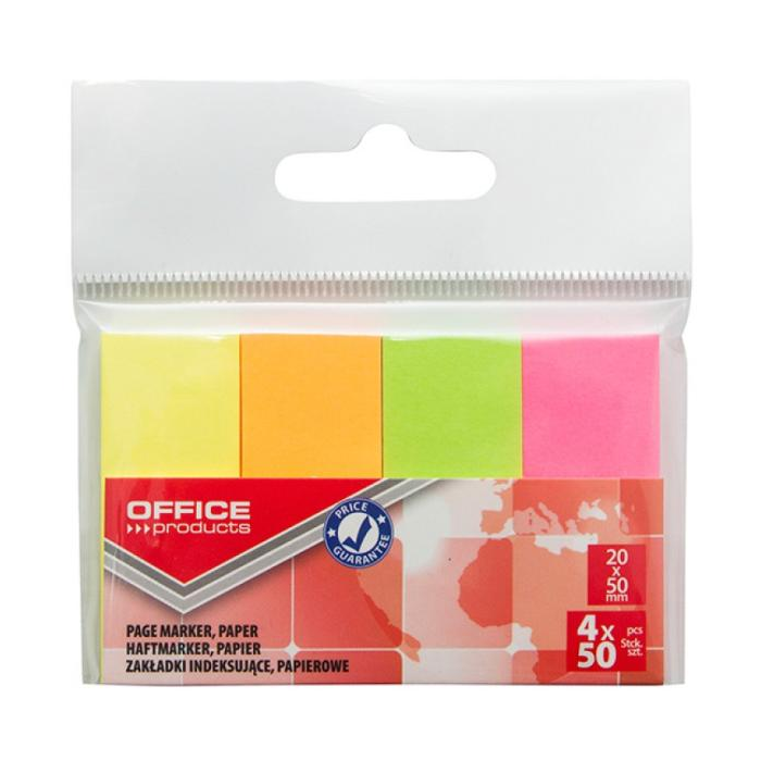 Samolepiace papierové indexovacie záložky, ideálne pre efektívny a rýchly výber stránky. Počet záložiek: 4x50 vo veľkosti 20x50mm. Hmotnosť: 70 gramov, lepidlo odstrániteľné vodou. Opakovane použiteľné, popisovateľné. Farba: mix farieb (neónová).