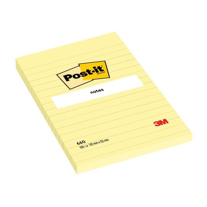 Žlté samolepiace bločky vo veľkom formáte s linajkami, určené pre štruktúrované poznámky a zefektívnenie organizácie