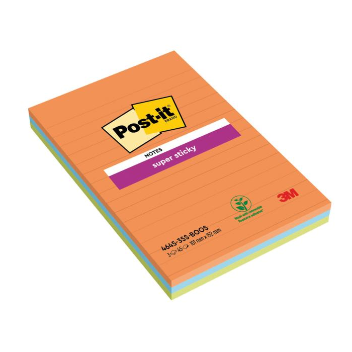 Samolepiaci bloček Post-it Super Sticky BOOST, linajkové, 101 mm x 152 mm, 45l , 3 bločky