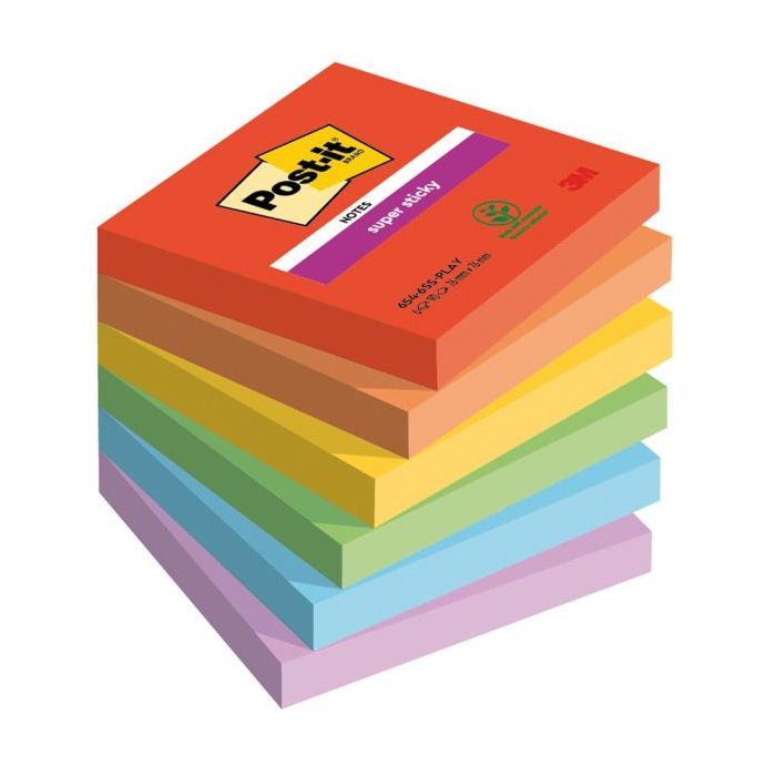 Samolepiaci bloček Post-it Super Sticky PLAYFUL, veľkosť 76x76 mm, 6 bločkov po 90 lístkov
