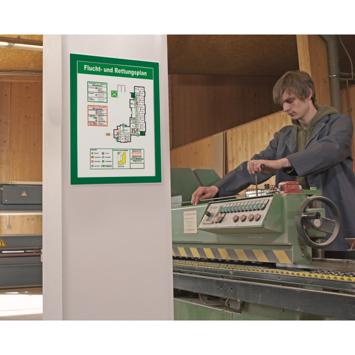 Samolepiaci informačný panel s prednou magnetickou časťou. Ideálny na vystavovanie kľúčových informácií, špeciálnych oznamov alebo dôležitých čísel. Informácie sa ľahko vymieňajú a sú čitateľné z oboch strán, ak sa panel umiestni napr. na okno alebo priehľadné dvere. Vhodný na hladké a pevné povrchy. V prípade potreby je ľahko premiestniteľný bez potreby vŕtania. Formát A4, farba rámu zelená. V balení 2 ks.