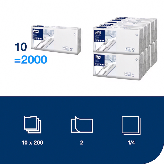 Tork dvojvrstvové servítky – obed sú ideálne pre zariadenia, kde sa servírujú ľahké jedlá alebo ľahké občerstvenie. Môžete si vybrať z palety moderných farieb, ktoré budú ladiť s interiérom vašej reštaurácie.