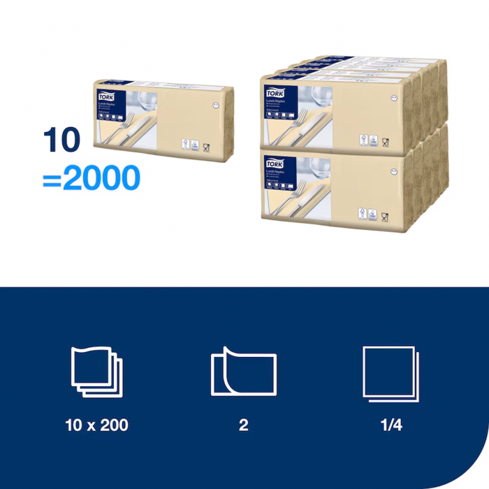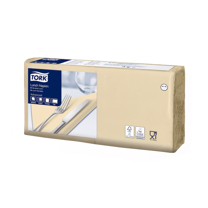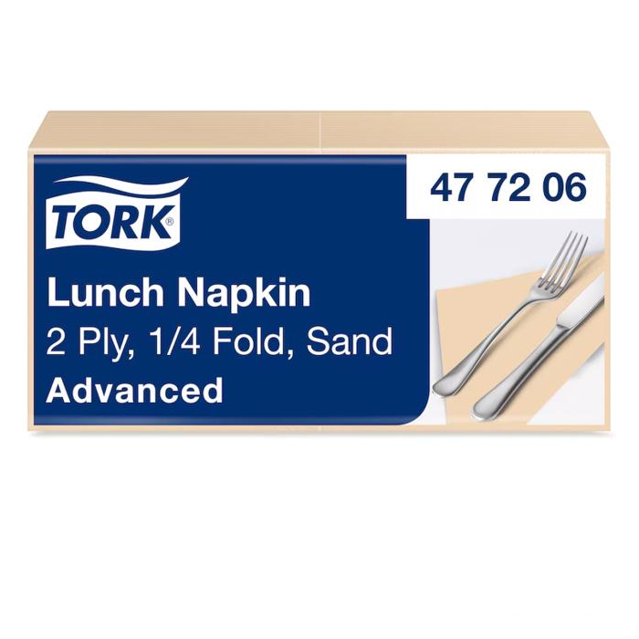 Servítky, 1/4 sklad, 2-vrstvové, 33x33 cm, Advanced, TORK "Lunch", piesková