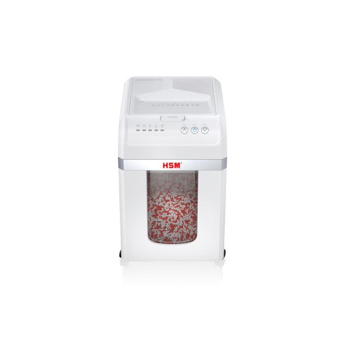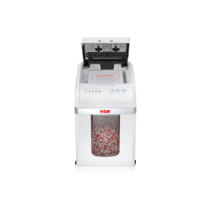 Plne automatická skartovačka dokumentov vám poskytuje bezproblémové zabezpečenie údajov. Stačí vložiť stoh papiera, zatvoriť vrch - a zariadenie sa postará o zvyšok. Skartovačka dokumentov s automatickým podávaním skartuje až 200 listov na častice, ktoré zodpovedajú úrovni zabezpečenia P-4 (4x12 mm), čím zaisťuje zabezpečenie údajov v súlade s GDPR.
