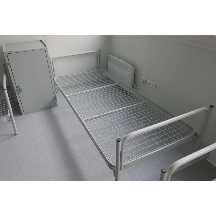 • skladacia kovová posteľ v sivej farbe je ideálna do nemocníc, internátov, a iných podobných zariadení