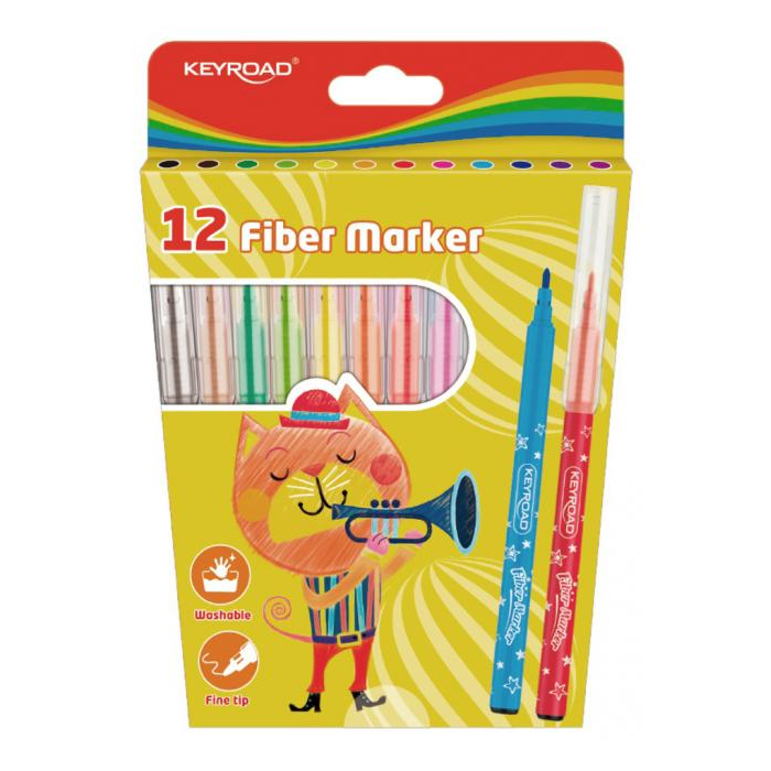 Školské fixky KEYROAD Fiber Marker, 12 ks, mix farieb